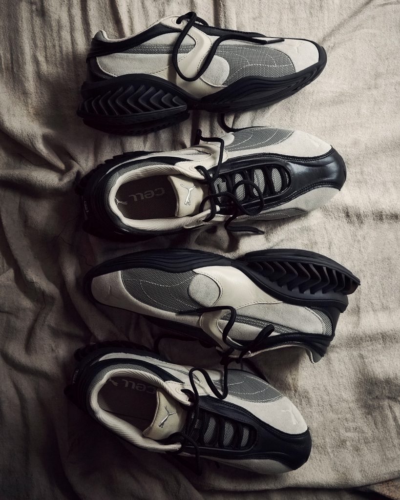 Originally developed in the 1990s, PUMA’s CELL technology is known for its distinctive cushioning structure and technical design. CELL GEO revisits this foundation with a refined, modern approach that focuses on shape, texture, and material quality.